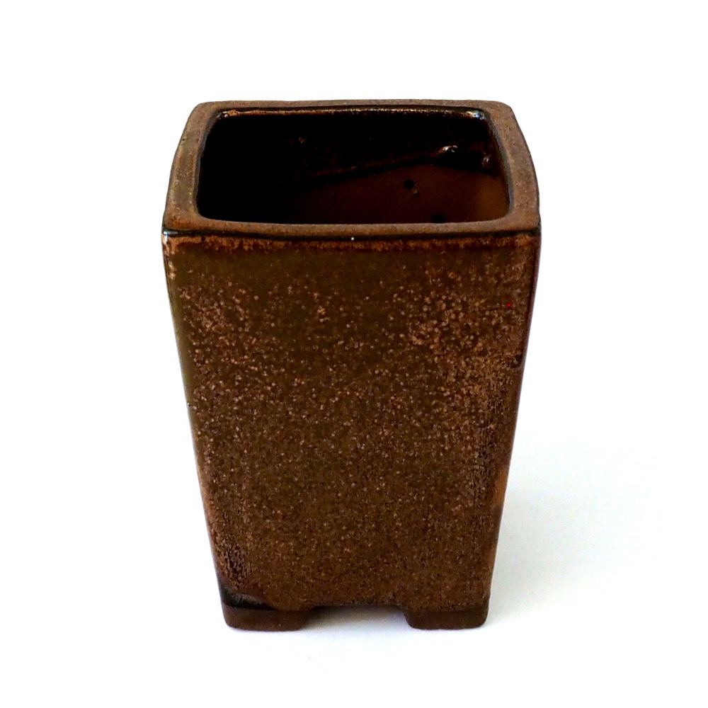 Glaserad kvadratisk bonsaikruka för kaskadform, kopparfärgad.